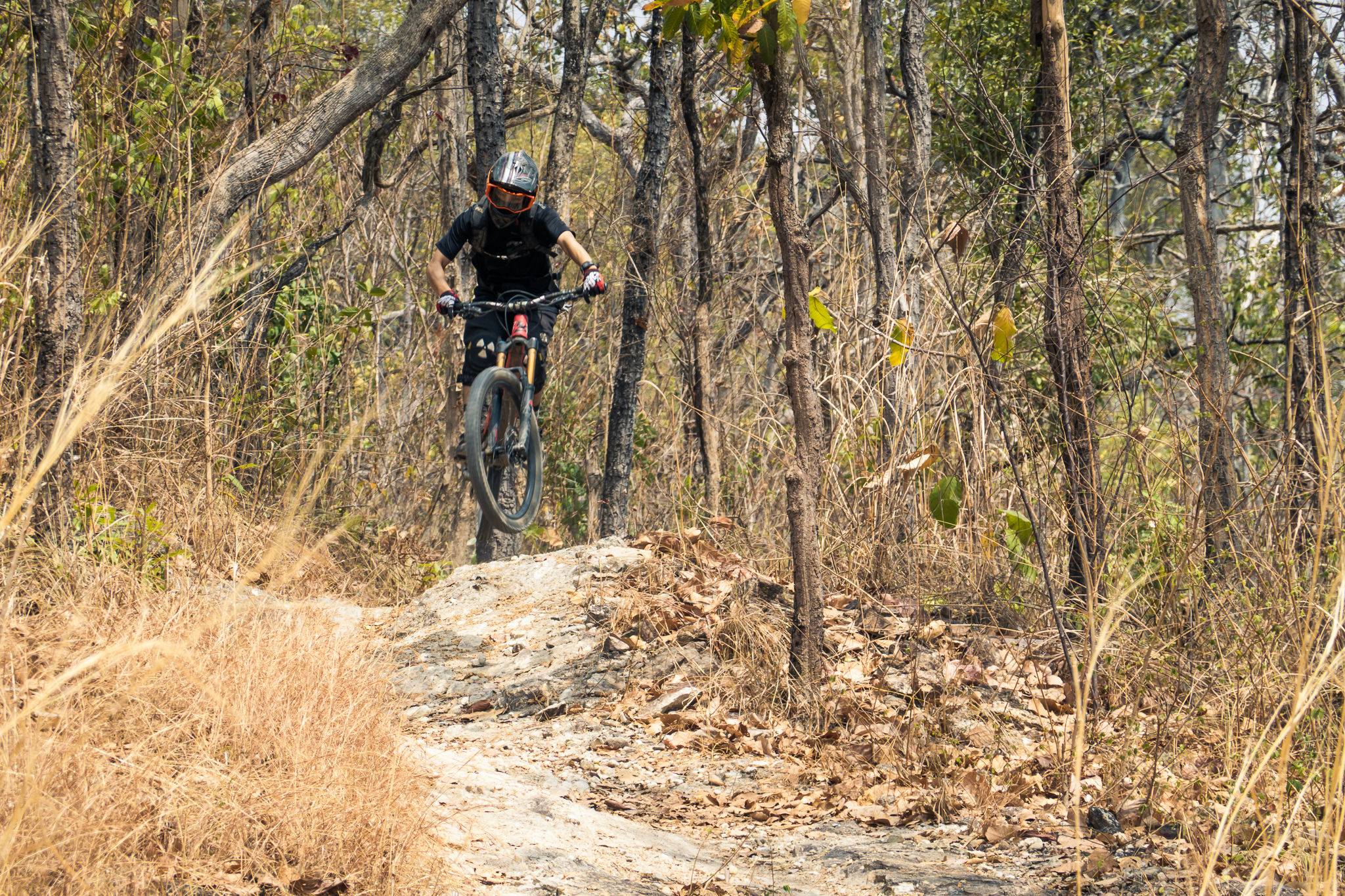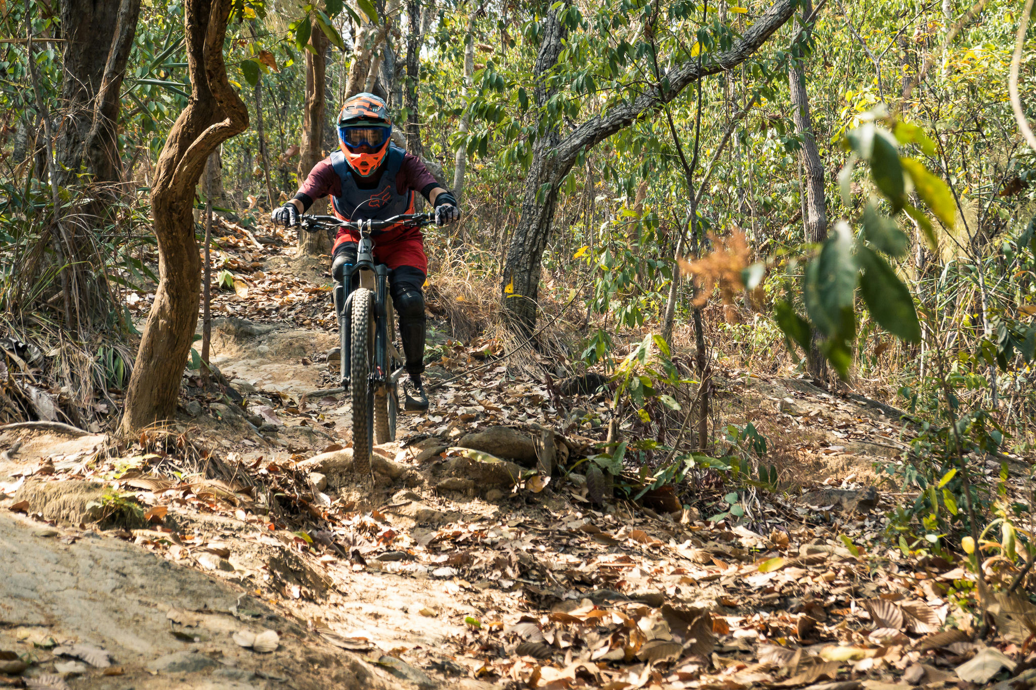 A scenic mountain bike trail featuring flowy single track with loose gravel and tight switchbacks. The route winds through bamboo jungle and lush tropical forest, passing through a traditional Hmong tribe village and lychee plantations along the mountainside. Riders will also encounter a refreshing waterfall along the way, making this trail a perfect mix of flow, culture, and nature.